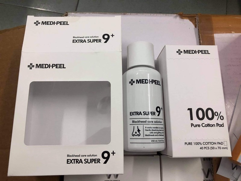 SET 2 MÓN Ủ MỤN MEDI-PEEL EXTRA SUPER 9+ BLACKHEAD CARE SOLUTION 250ML + 40 COTTON PADS